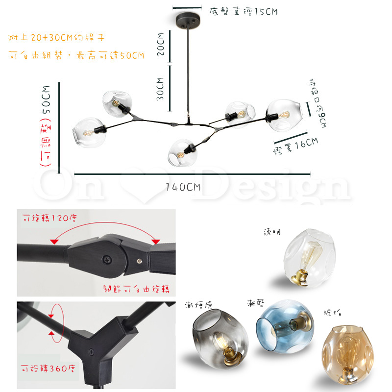 尺寸: 直徑Ø140 X 燈體高50 CM X 玻璃直徑16CM(內附20 + 30 公分桿子各1)