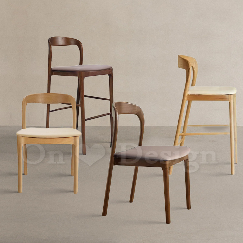 經典 餐廳 芬蘭極簡風 可堆疊 埃斯特 實木 餐椅 -原木/米色皮