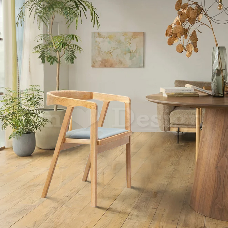 北歐極簡 設計款 小清新 餐椅 實木 餐廳椅 日式 波力 餐椅 洗白木色-水藍