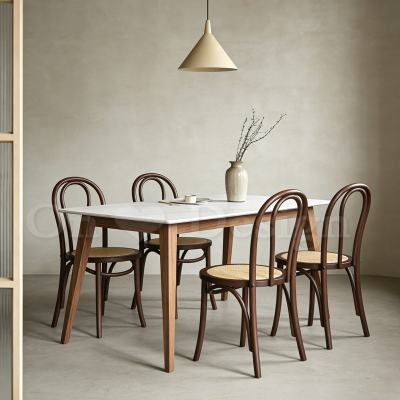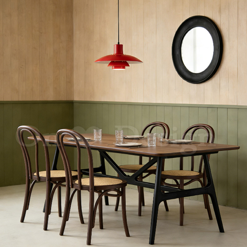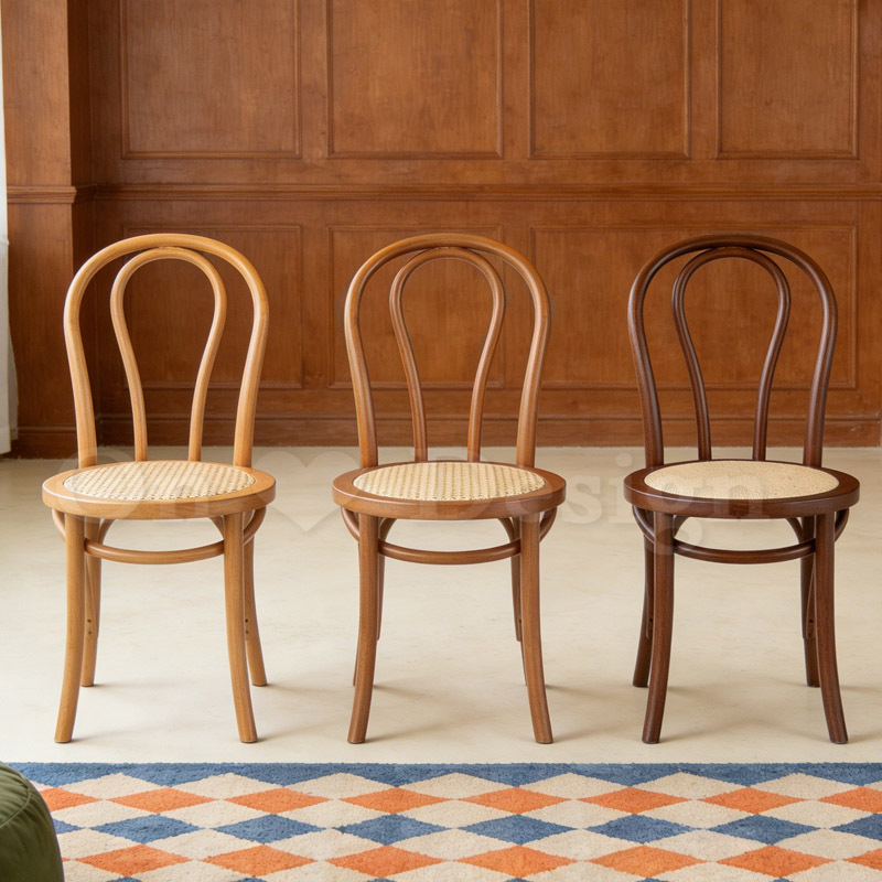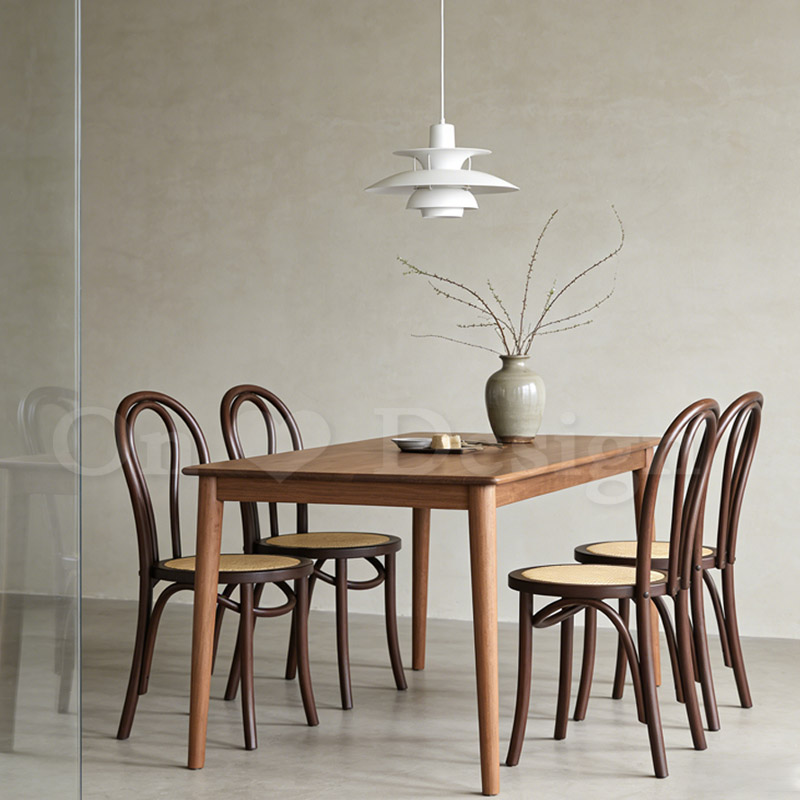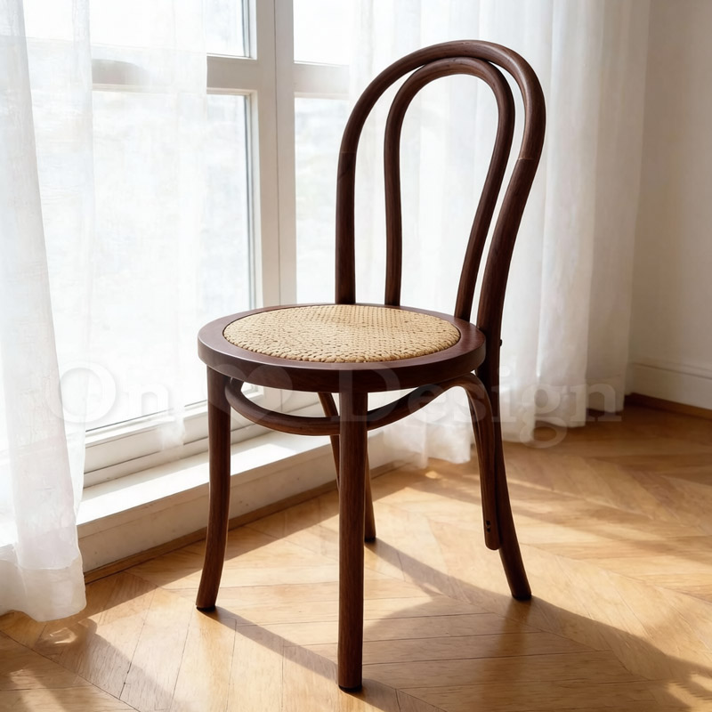 現貨🔥北歐風 經典 籐面 櫸木法式 餐廳椅 實木 18號 藤面 餐椅-深胡桃木色