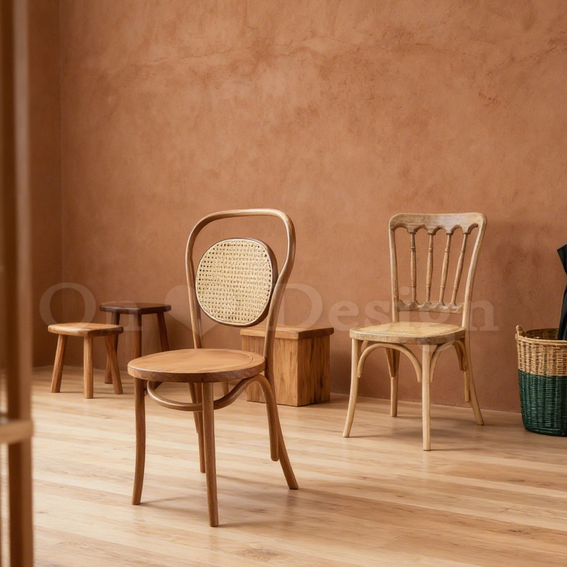 北歐風 經典 彎木 櫸木法式 餐廳椅 實木 10號 木面 餐椅-櫻桃木色