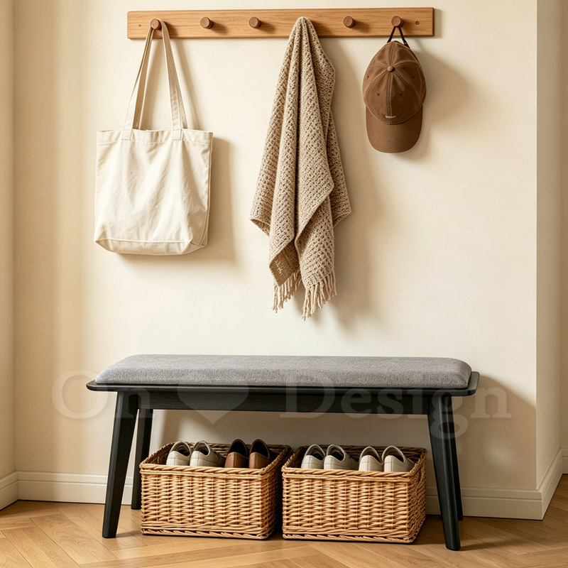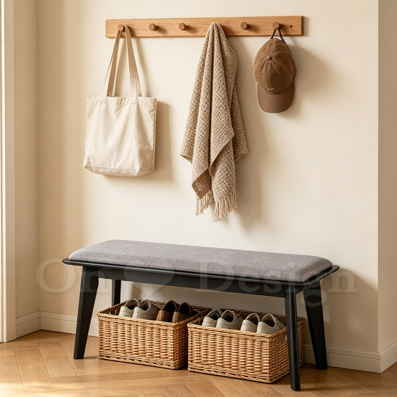 和風 日式 軟墊長凳 黑-灰墊