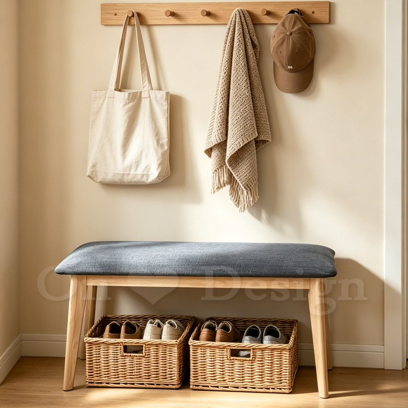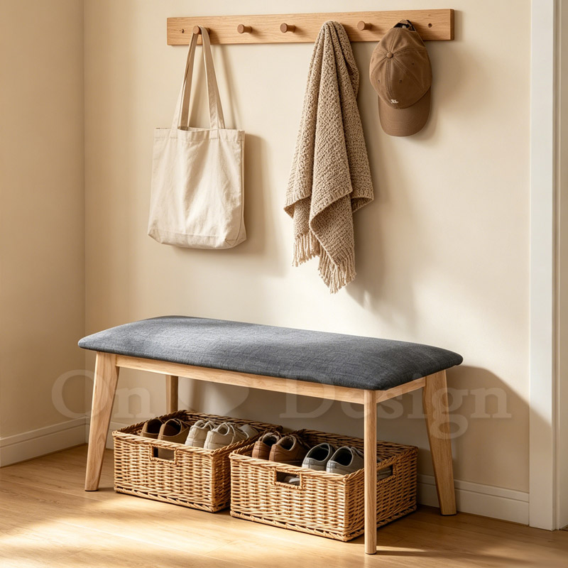 和風 軟墊 雙人椅凳 原木色 長凳 110CM -灰墊