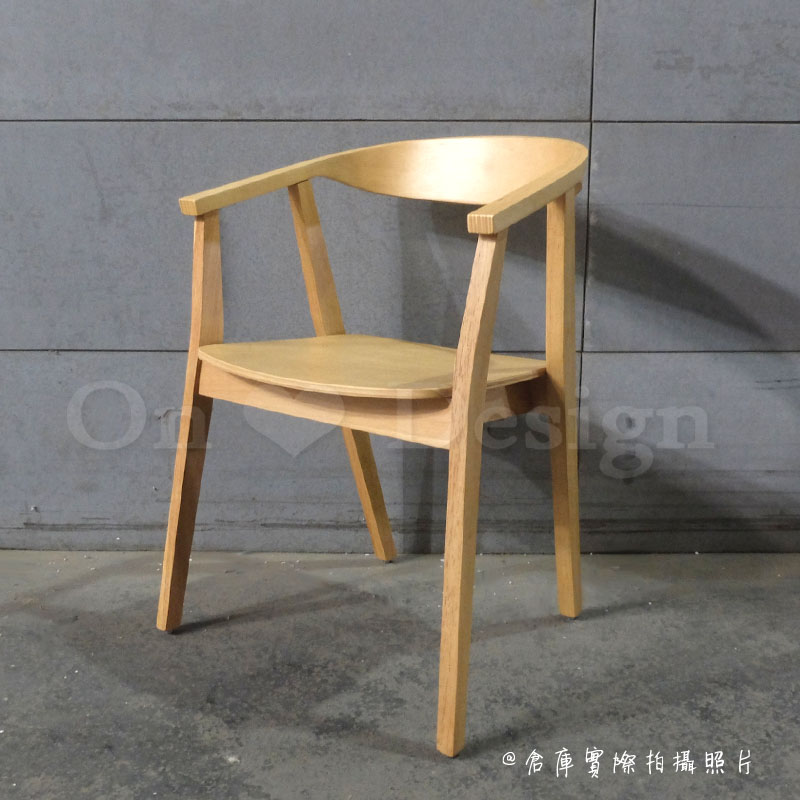 朗尼 扶手 實木 圈椅 餐椅 原木色木座板