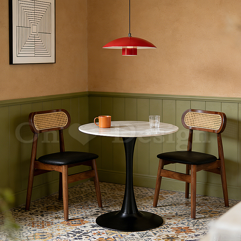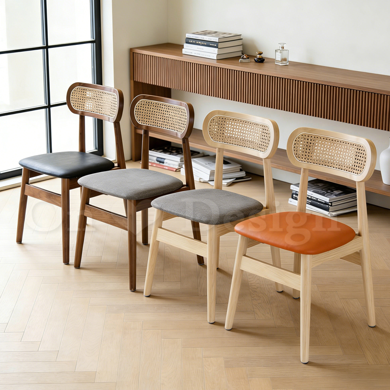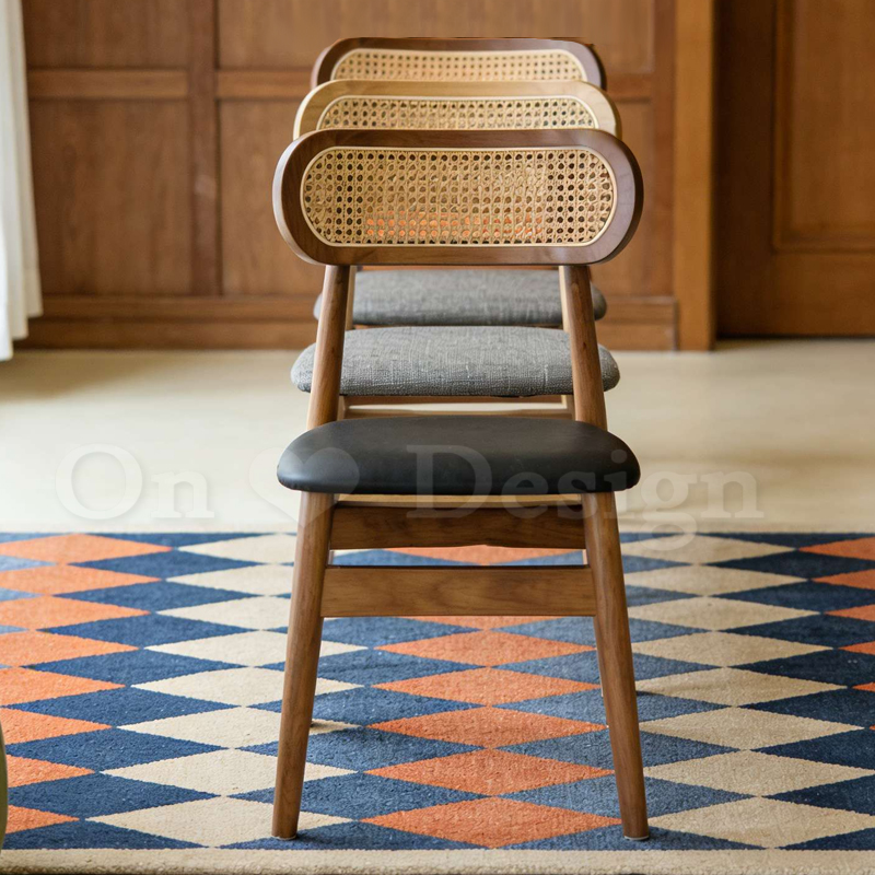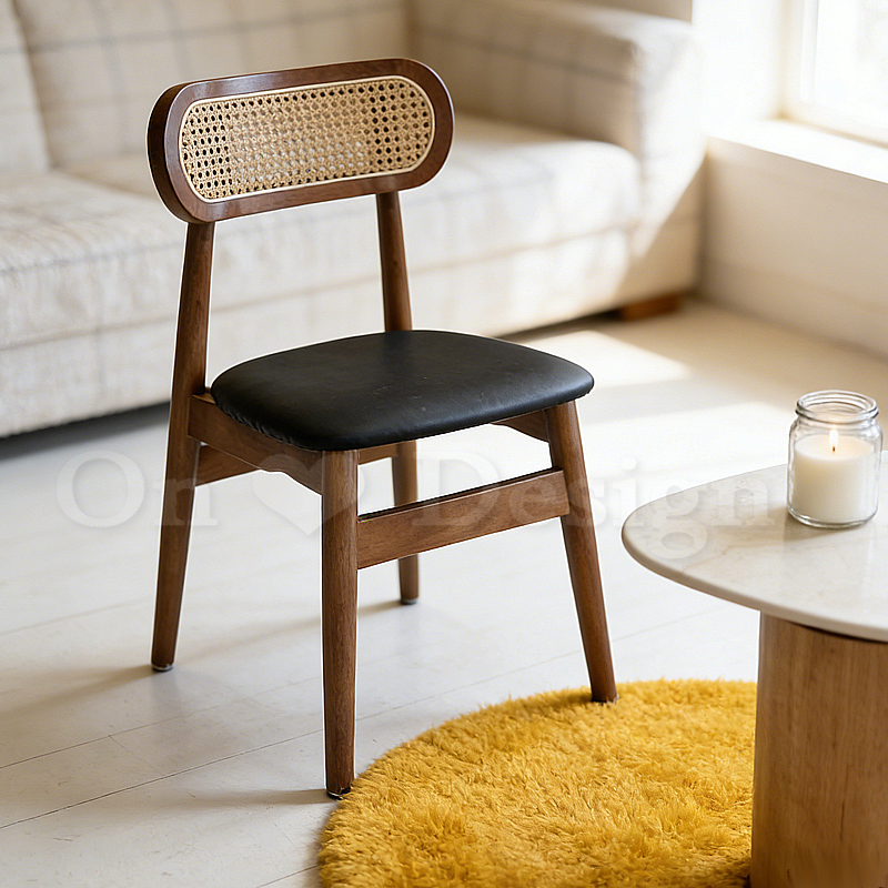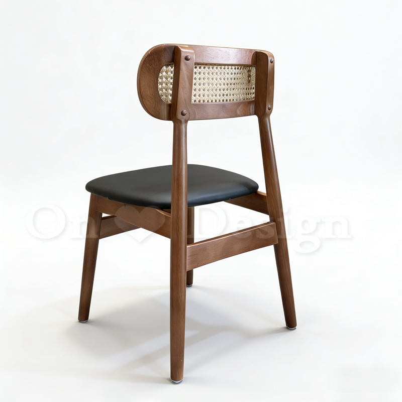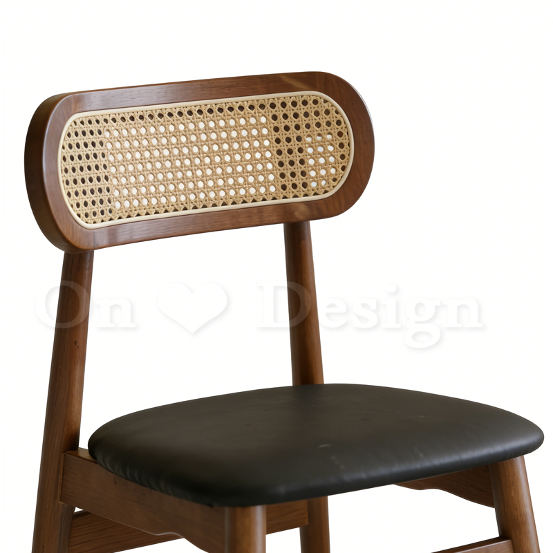 天然橡膠木的厚實支撐,編藤靠背篩落了午後微光