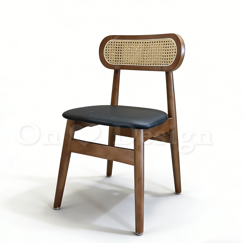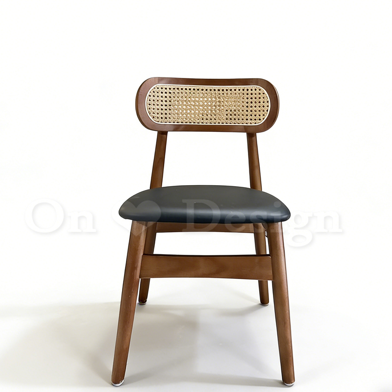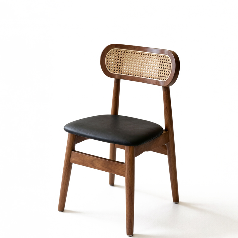 北歐實木 扶手 餐椅 餐廳椅 藤編椅靠背 藤本 餐椅 B款 胡桃/黑皮