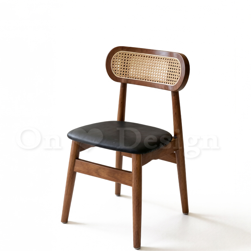 藤本 實木餐椅B款 胡桃/黑皮