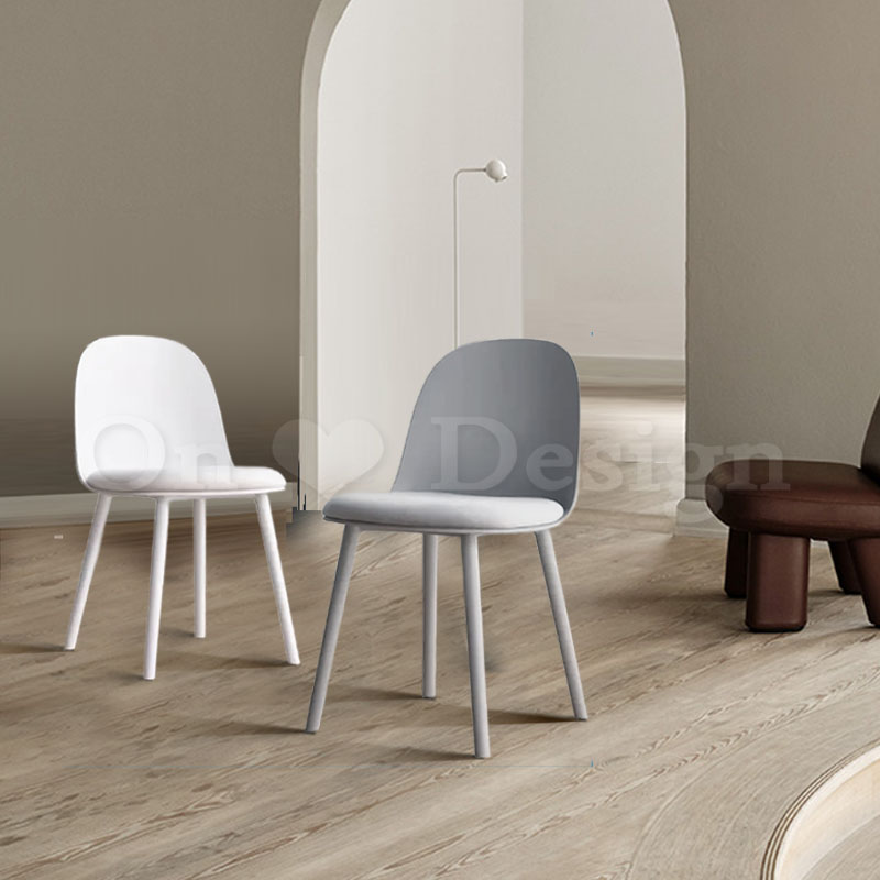 北歐 簡約 咖啡廳椅 餐椅 餐廳椅 芽間 塑料 皮革軟墊椅-米灰