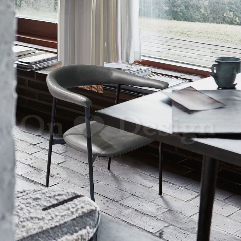LOFT 法式 復古 工業風 鐵 酒吧 咖啡廳 餐廳 餐椅 奧特曼 扶手椅-灰皮
