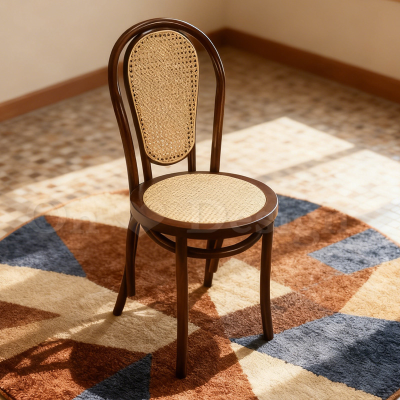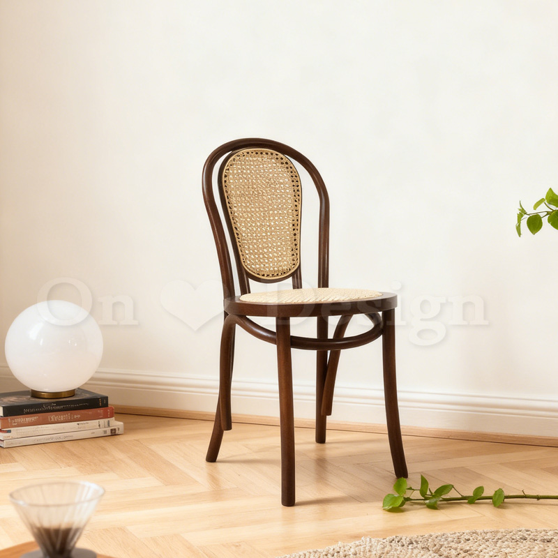 北歐風 經典 櫸木法式 餐廳椅 實木 藤靠背 18號 藤面 餐椅-深胡桃木色