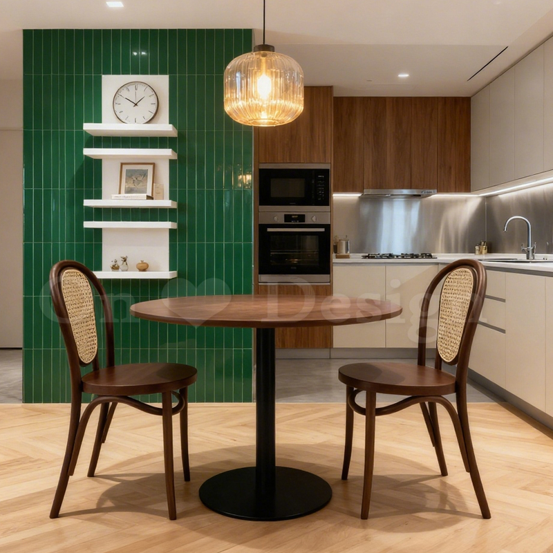 北歐風 經典 櫸木法式 餐廳椅 實木 藤靠背 18號 木面 餐椅-胡桃木色