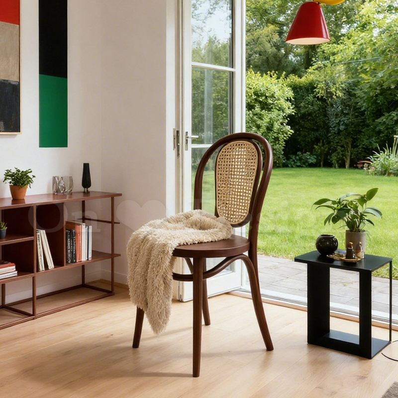 北歐風 經典 櫸木法式 餐廳椅 實木 藤靠背 18號 藤面 餐椅-深胡桃木色