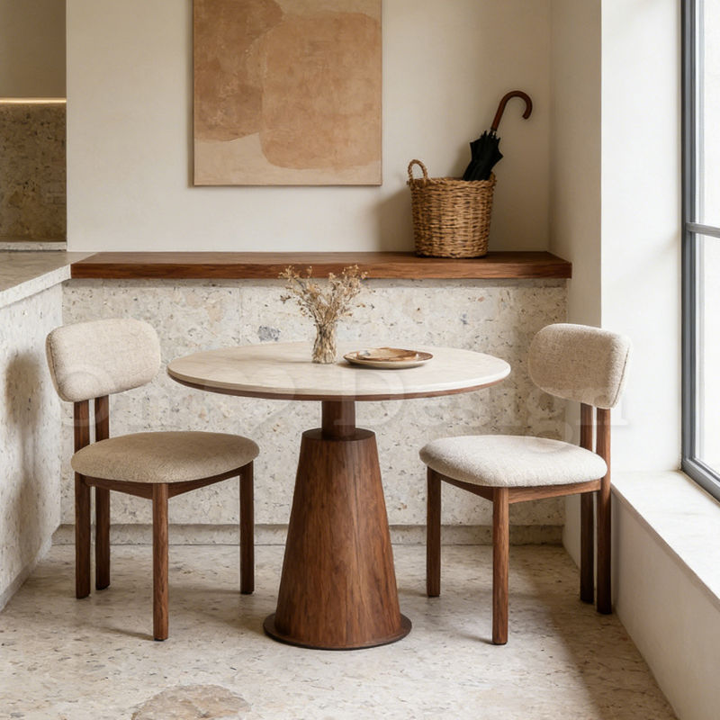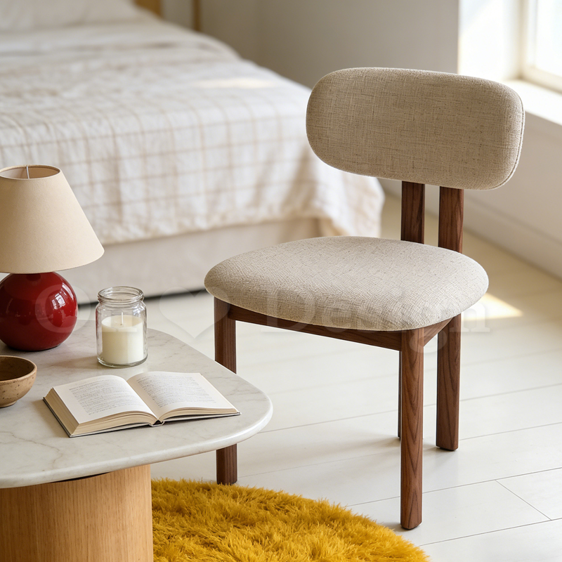 中世紀風 布里 餐椅 -胡桃/麻布 米