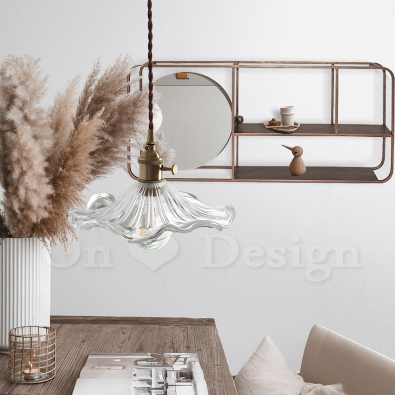 青銅色的帶點金色的色澤,搭配上復古造型的玻璃燈罩,低調卻也高貴。