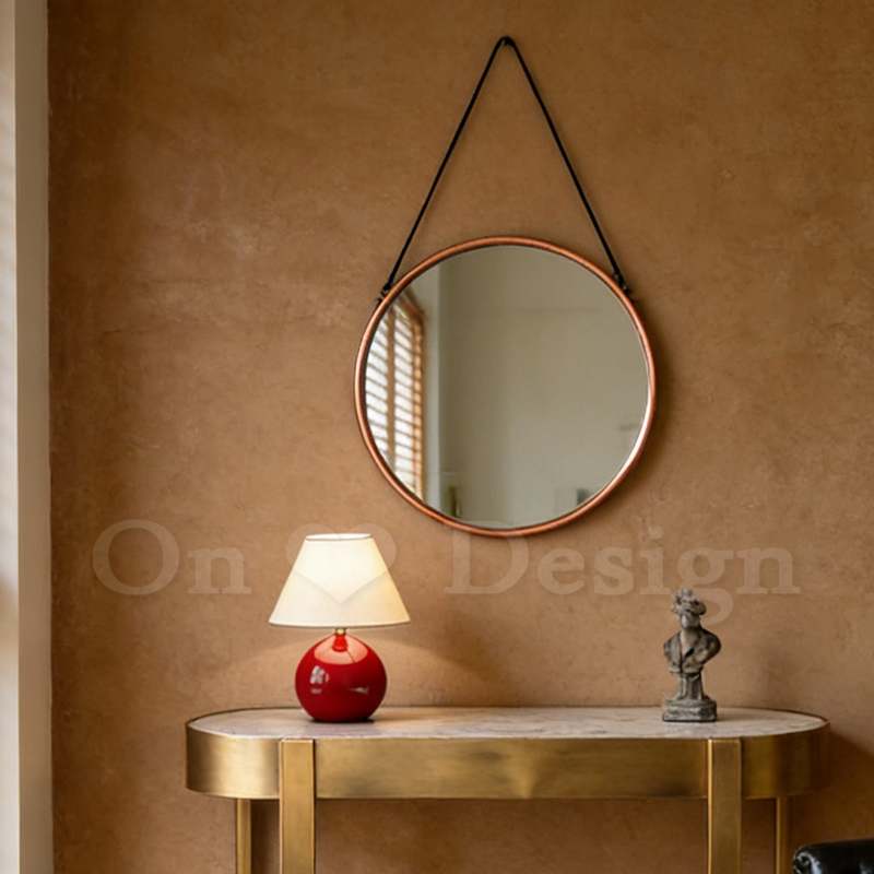 仿舊 玫瑰金框 圓形 掛鏡