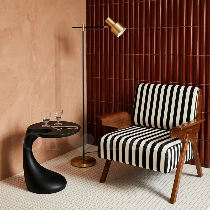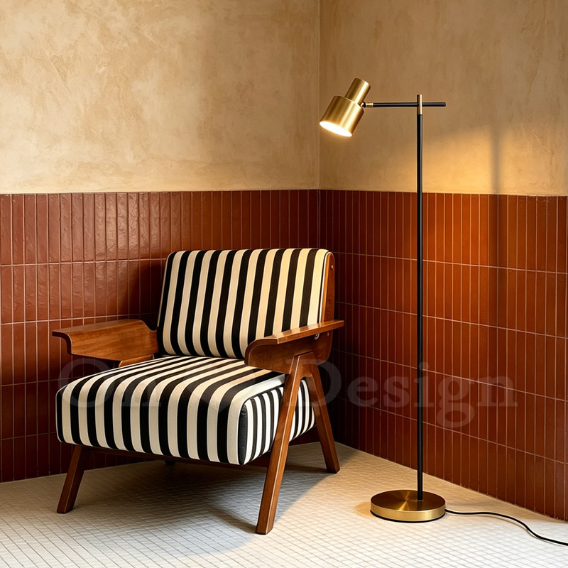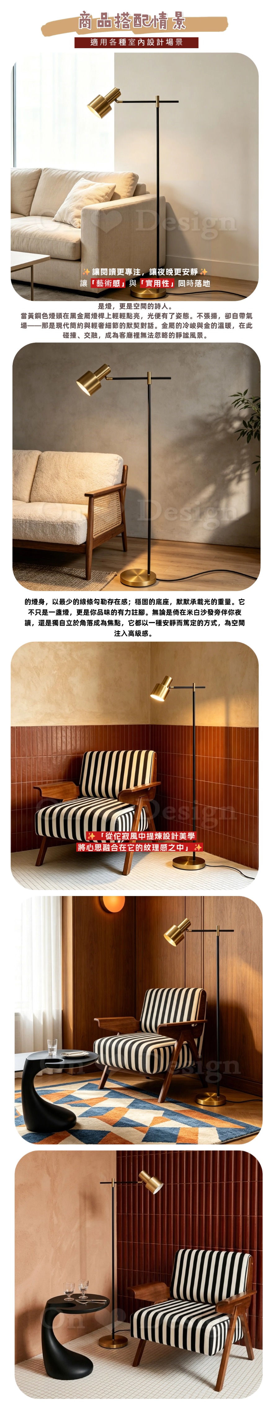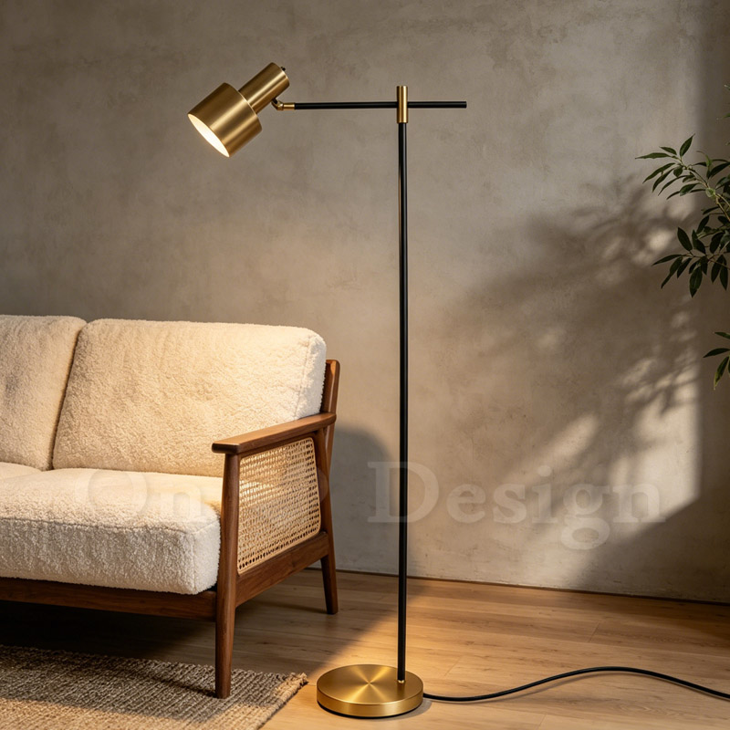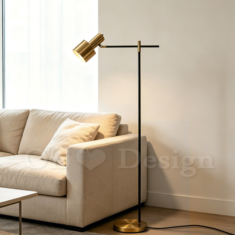 當黃銅色燈頭在黑金屬燈桿上輕輕點亮,光便有了姿態。不張揚,卻自帶氣場——那是現代簡約與輕奢細節的默契對話。金屬的冷峻與金的溫暖,在此碰撞、交融,成為客廳裡無法忽略的靜謐風景。
