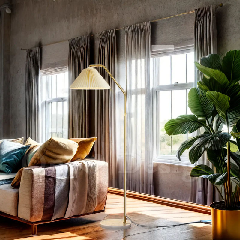 黃銅 百褶傘 大理石 落地燈 -金桿