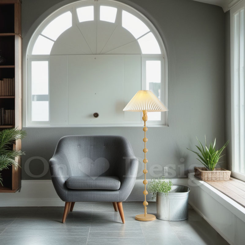 珠鍊 木 百摺傘 燈罩 落地燈 -原木色