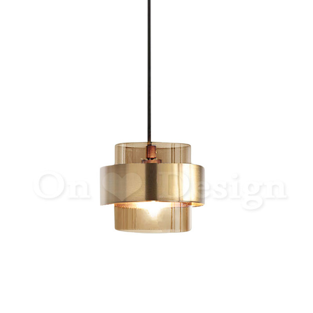 丹麥設計 北歐 極簡 設計師的燈款 黃銅 琥珀 玻璃 愛爾芙 玻璃吊燈 - 兩種尺寸 +