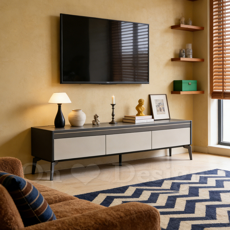 低調線條的電視櫃, 把視覺雜訊全部收乾淨;