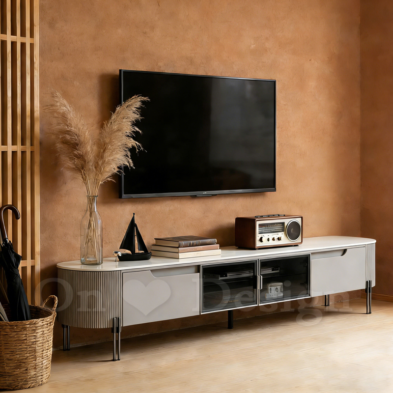 低調線條的電視櫃, 把視覺雜訊全部收乾淨;