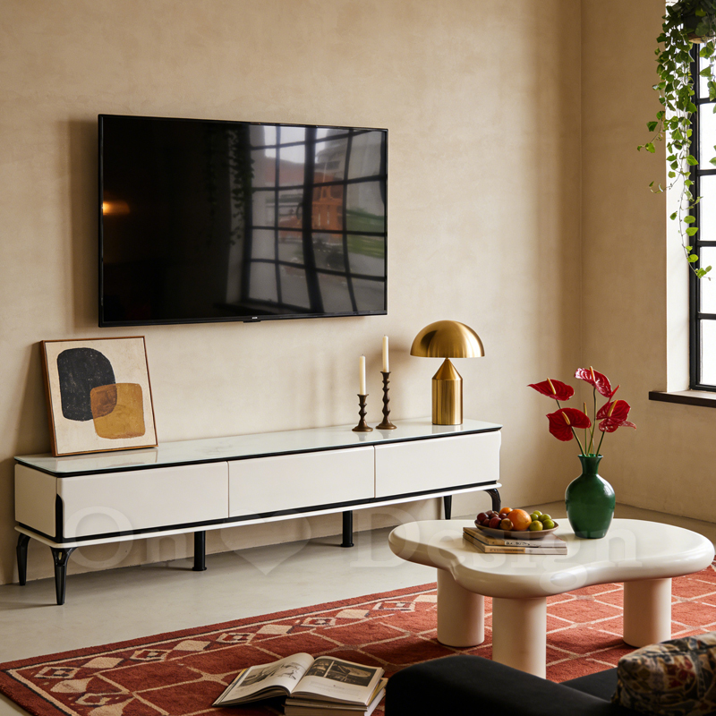 莫白 玻璃 帶抽屜 電視櫃 -196 CM