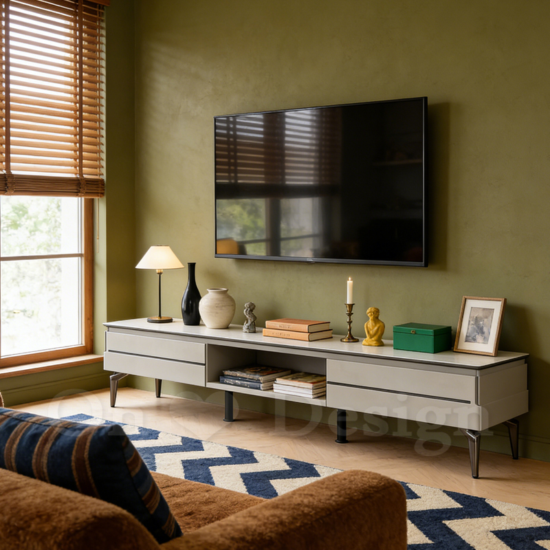 低調線條的電視櫃, 把視覺雜訊全部收乾淨;