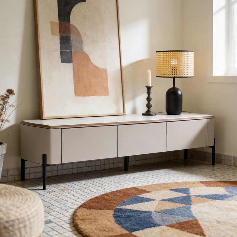 低調線條的電視櫃, 把視覺雜訊全部收乾淨;