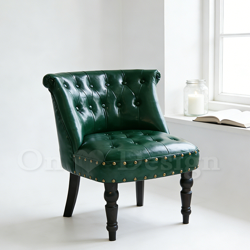 VINTAGE 法式 工業沙發家具 單人 銅釦鉚釘 艾爾特沙發 -綠