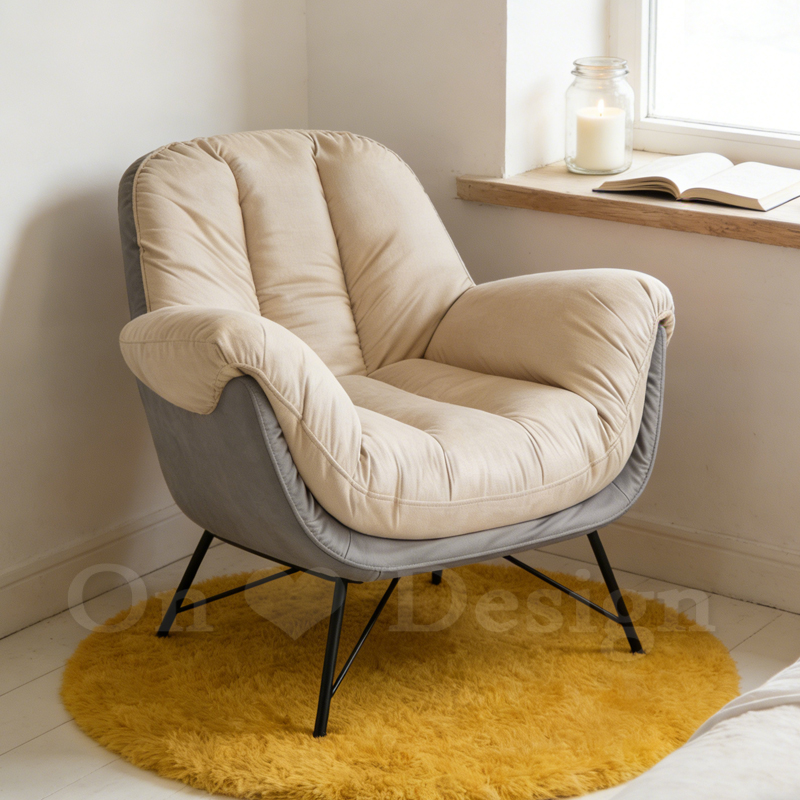 古瑟 雙色 單人沙發 -米皮
