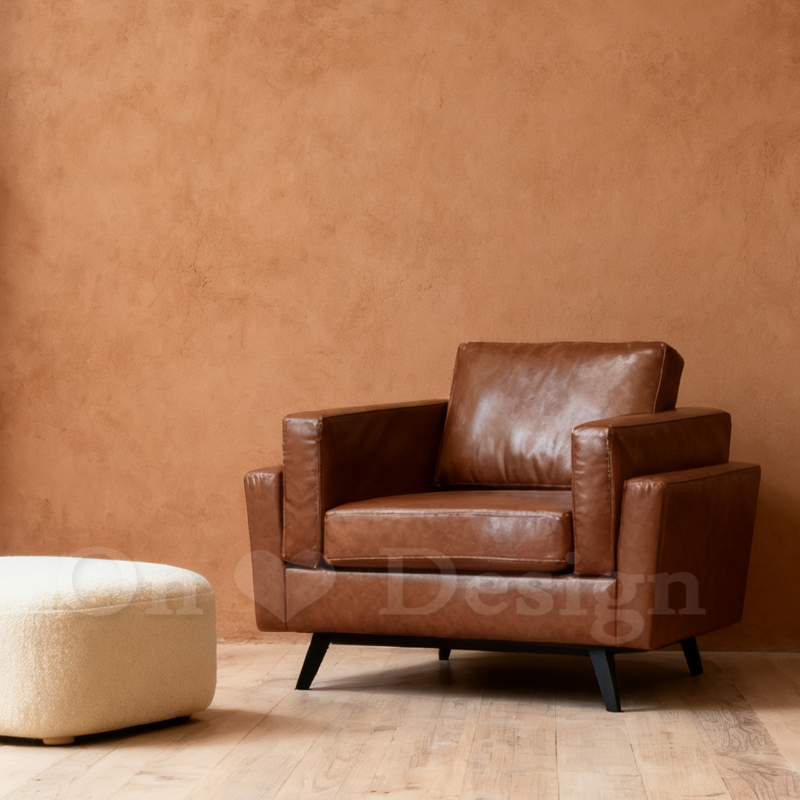美式 北歐 極簡 設計 咖啡廳 LOUNGH 老式 皮革 單人 沙發 -咖
