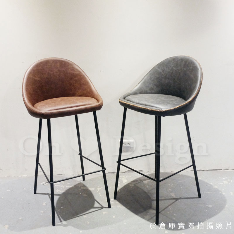 仿油蠟皮 半洛特 吧檯椅-灰皮