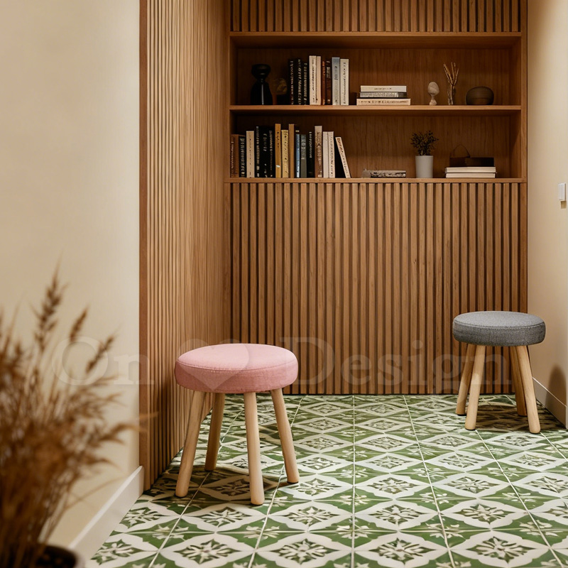 【晨光中的溫柔陪伴|超可愛軟墊實木矮凳】