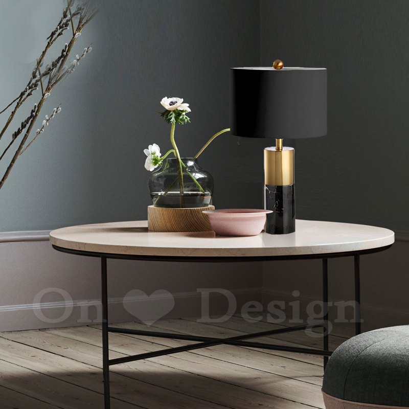 優美簡潔的幾何線條,搭配上優雅的白色大理石作為基座,燈罩內裡以金色為底,低調而華麗,卻相當好看高貴。