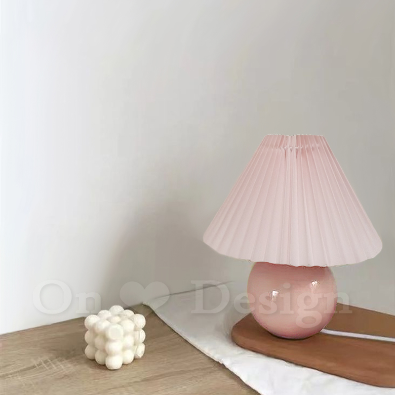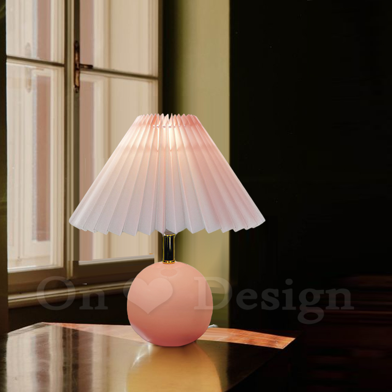 丹麥設計 復古 鄉村風 設計師的燈款 台燈 圓球 百褶傘 陶瓷 桌燈-粉色