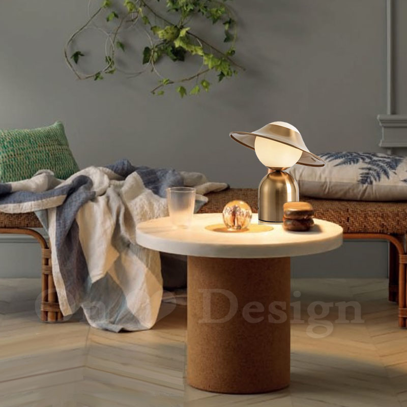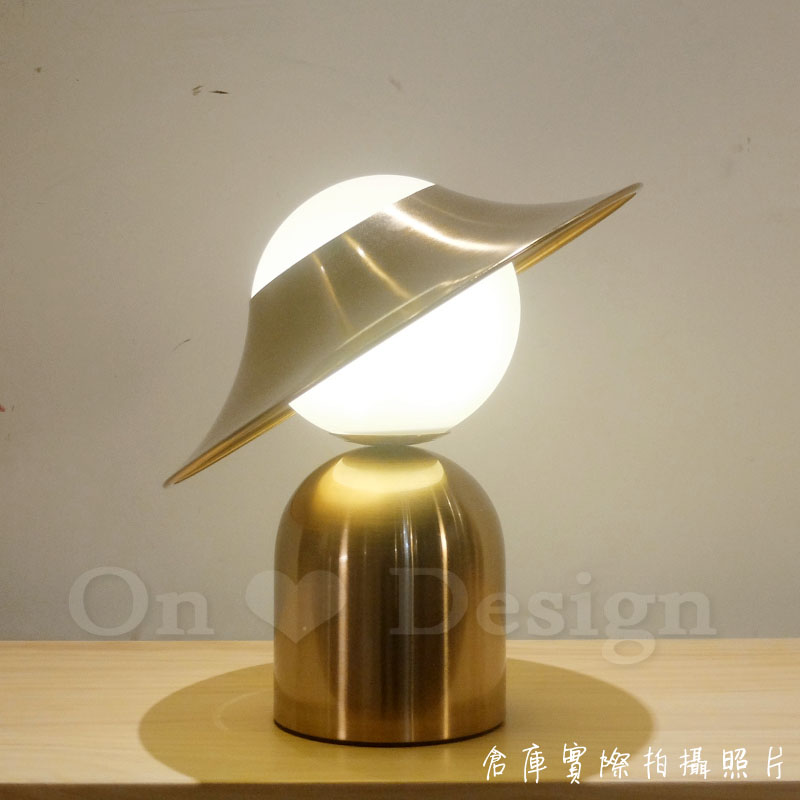 優美簡潔的幾何線條,鍍金的圓環鐵件套在奶白玻璃球上,就像是優雅的女士帶帽,藉由工業設計可充分傳達及點綴主人的意念,低調而華麗,卻相當好看高貴。