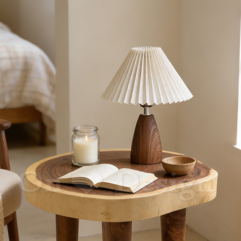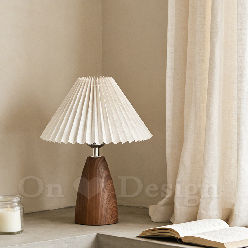 薩斯 錐形 桌燈 麻布燈罩-胡桃木色