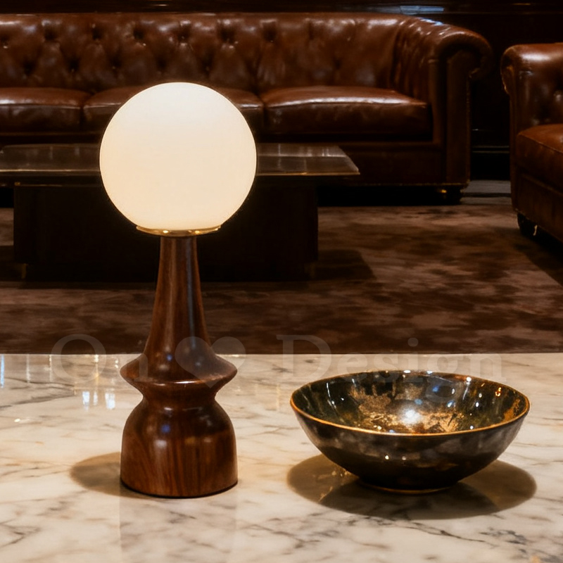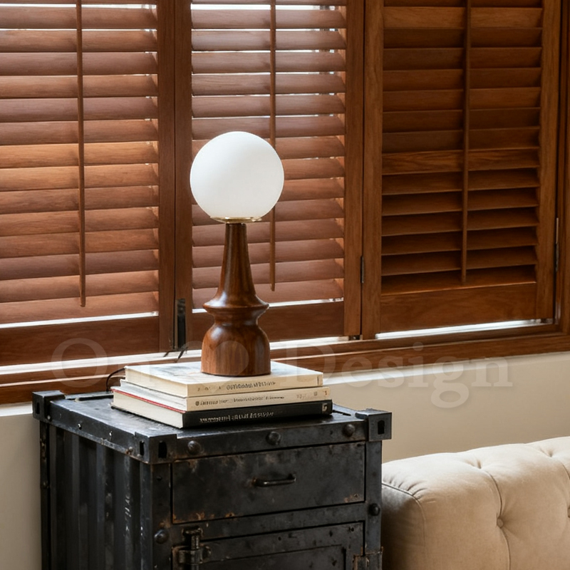 中世紀 復古 極簡風格 侘寂風 設計師的燈款 台燈 古堡 胡桃木 圓球玻璃 桌燈