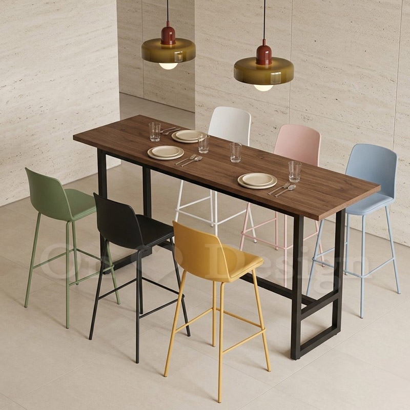 以流線的幾何線條作為主體,桌面採用貼皮的胡桃木紋面,透過木頭紋路特有的溫潤線條,配上黑色鐵件,輕易地刻畫出北歐極簡的風格。