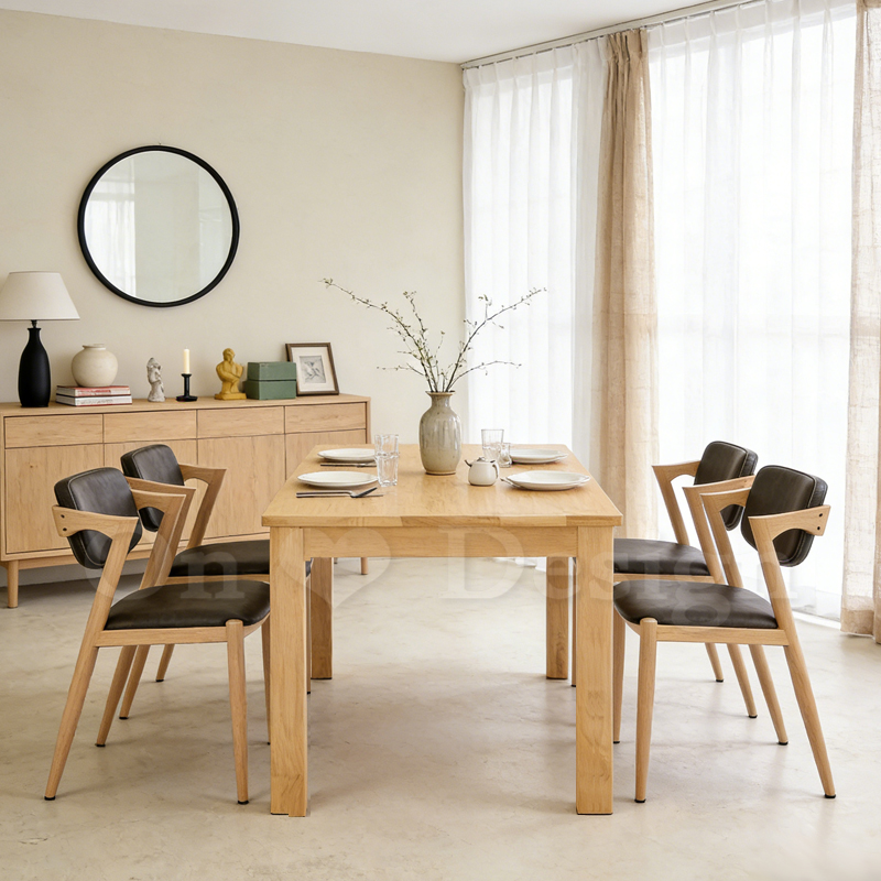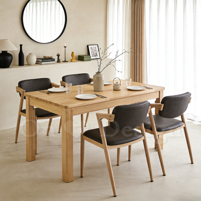 溫潤沈穩的實木桌面,帶著實木特有的溫潤質感, 從清晨的咖啡到深夜的一餐,不需小心翼翼,卻始終保持從容。