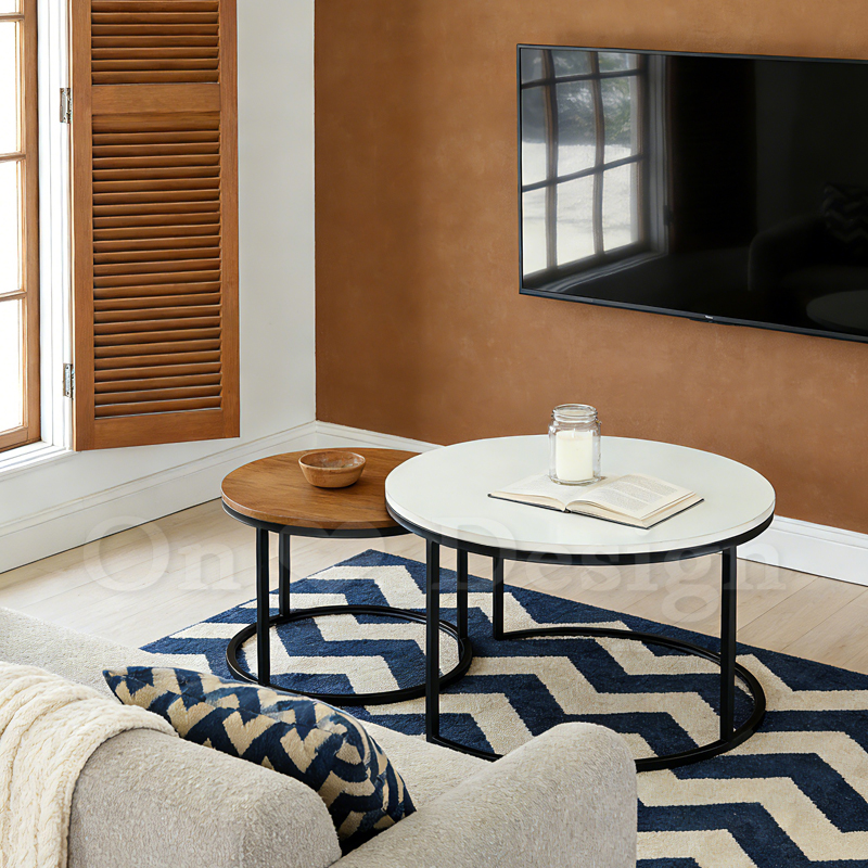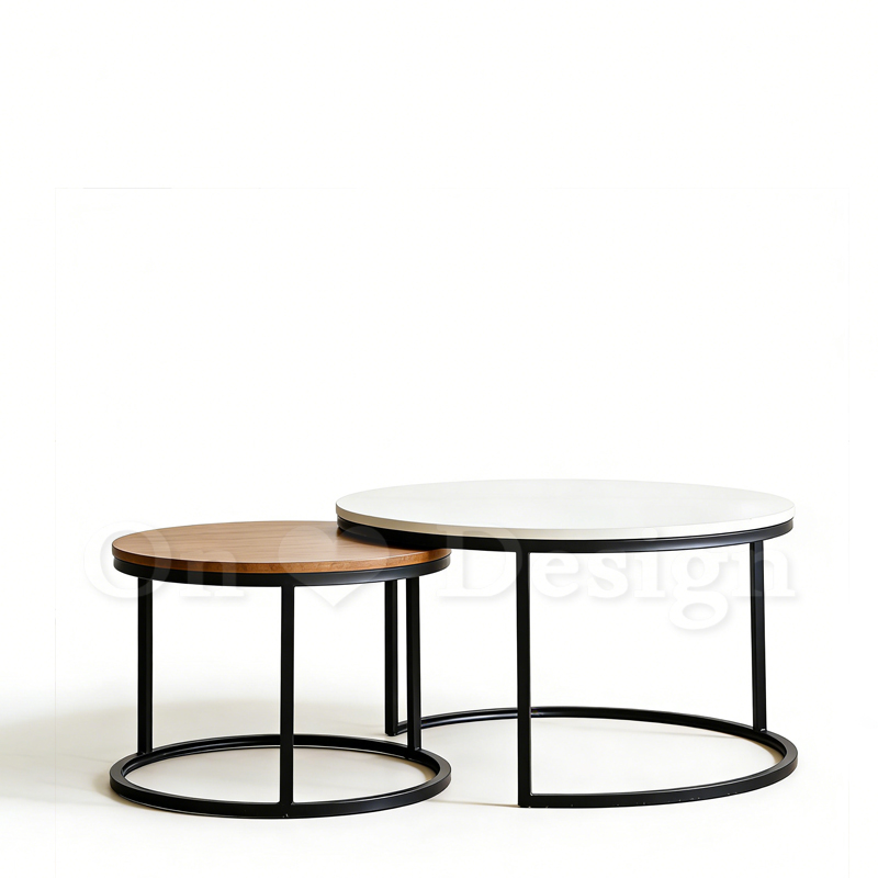 玻璃 胡桃木皮 兩件式 茶几 - Ø 80CM