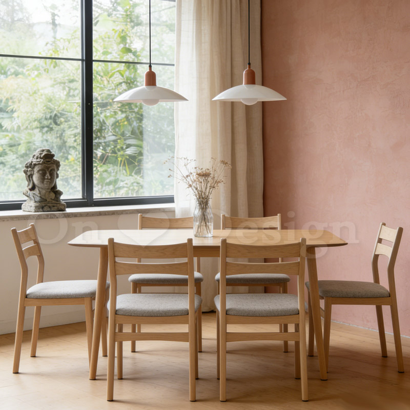 簡單的長圓弧造型,配上原木色的桌腳,簡單又充滿設計感。