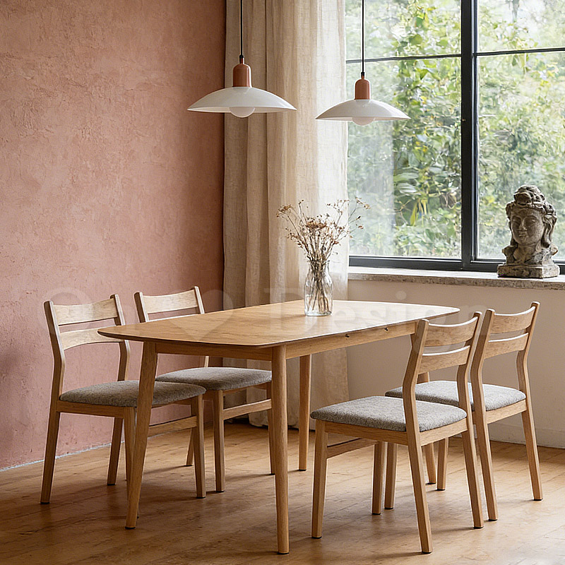 日式 和風 可調整長度 餐桌-原木色