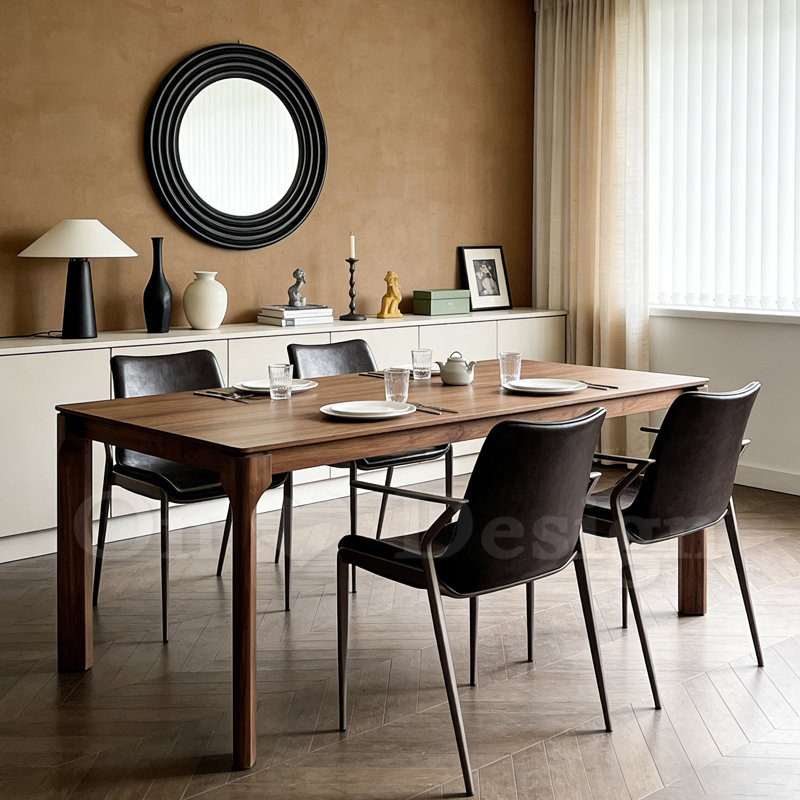 簡單的長圓弧造型,配上胡桃色的桌腳,簡單又充滿設計感。