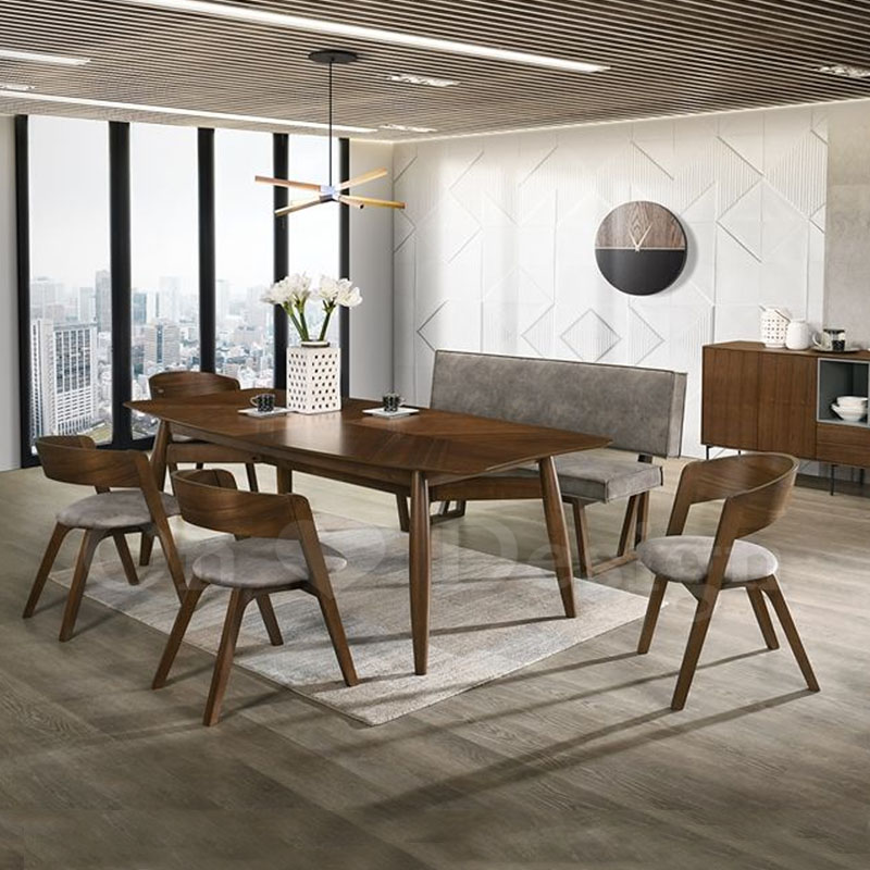 簡單的圓弧內凹造型,方便您的餐椅收納,配上胡桃色的桌腳,簡單又充滿設計感。