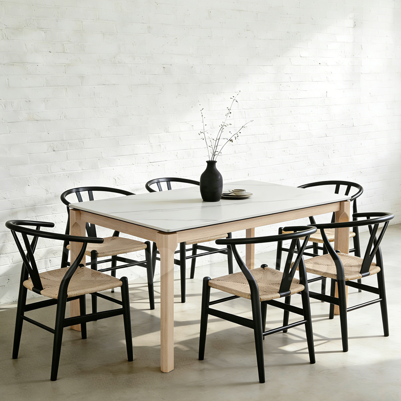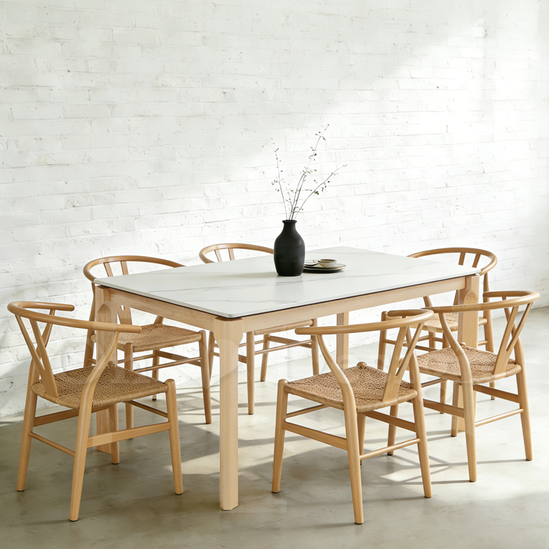 搭配胡桃木椅架餐椅,線條俐落卻不張揚,