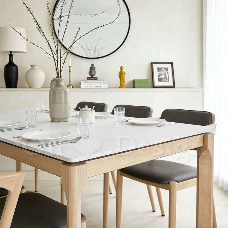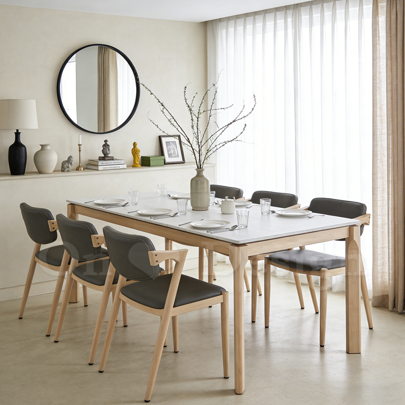 桌腳選用溫潤木質,平衡了岩板的理性,