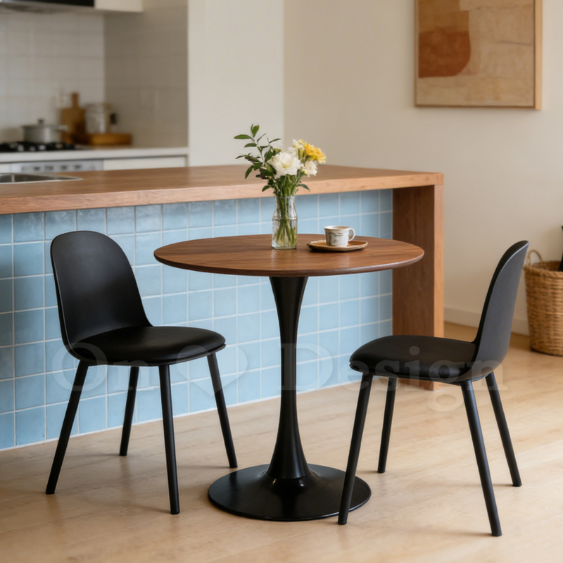 胡桃木色面 鬱金香 圓桌 黑色 -70CM