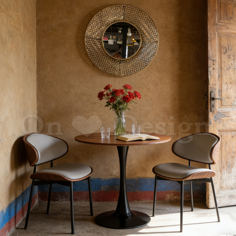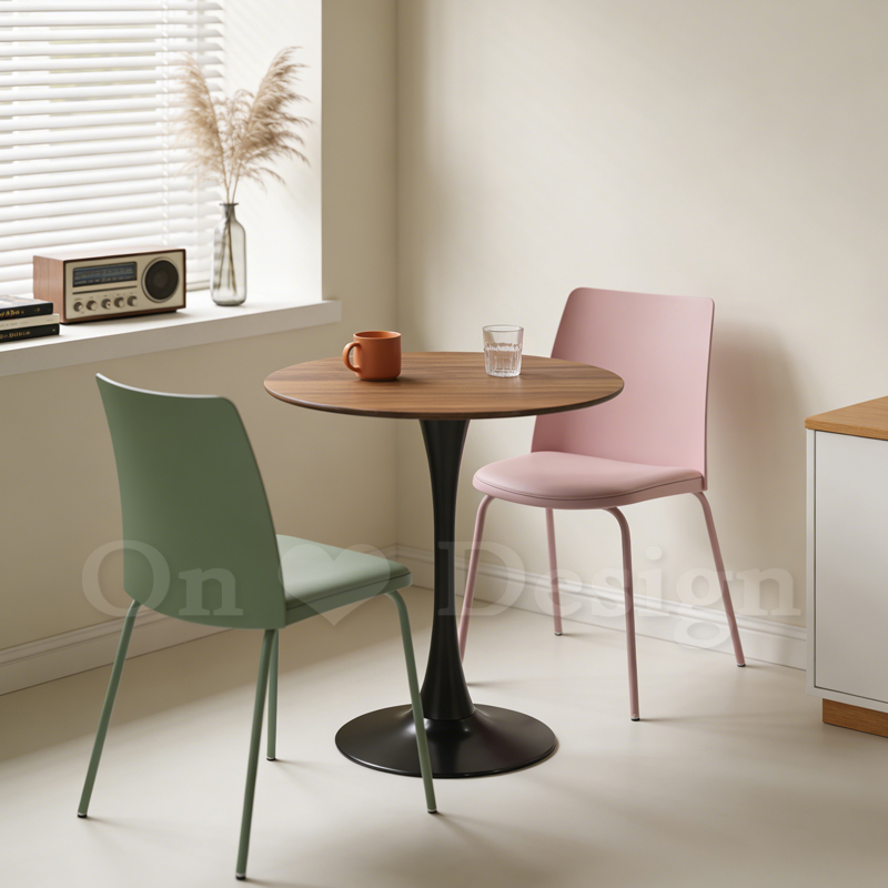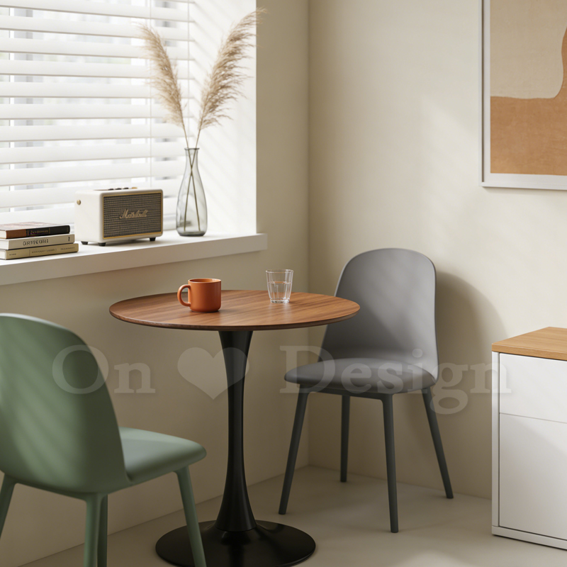 北歐 極簡 洽談桌 書桌 戶外桌 四人位 胡桃木色面 鬱金香 圓桌 黑色 -70CM