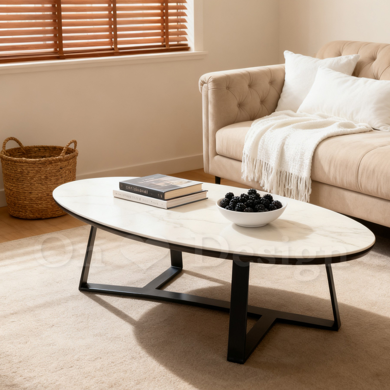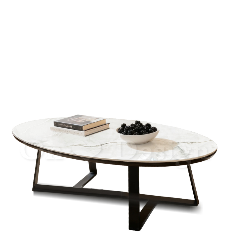 岩板 三角 白色 橢圓形 大茶几-122CM
